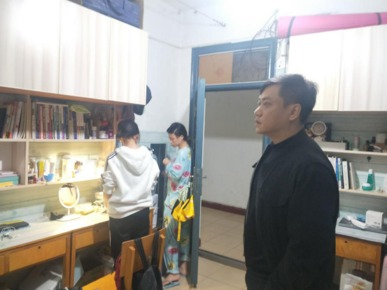 10月28日晚9:30,色情短剧 全体辅导员在颜学俊副书记带领下检查学生寝室,了解学生学习生活情况,提醒学生注意用电安全。