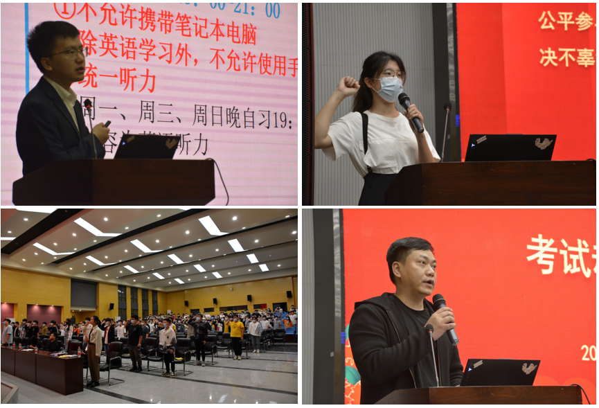 紧接着,21级辅导员张颖旭公布了学院《2021级最新早晚自习管理办法》,并指出早晚自习考勤与综合测评直接关联,呼吁同学们认真对待早晚自习,不要在该奋斗的年龄选择安逸。随后,计科类32102班的高昕同学带领同学们进行了备战四级暨诚信考试宣誓。在同学们高涨的热情中,大会逐渐接近尾声。最后,由学院党委副书记颜学俊宣读《色情短剧