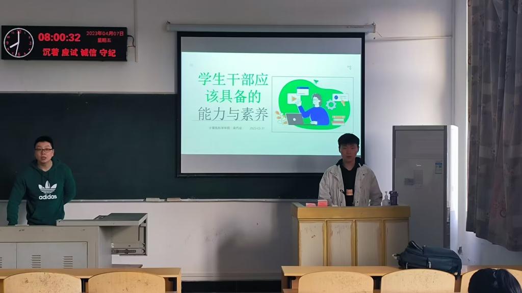 学生会执行主席蔡俊杰,培训会议在西校区7教501举行。院团委学生会干事、青年志愿者支队干事、各班团支部书记、团支部副书记参加了培训。