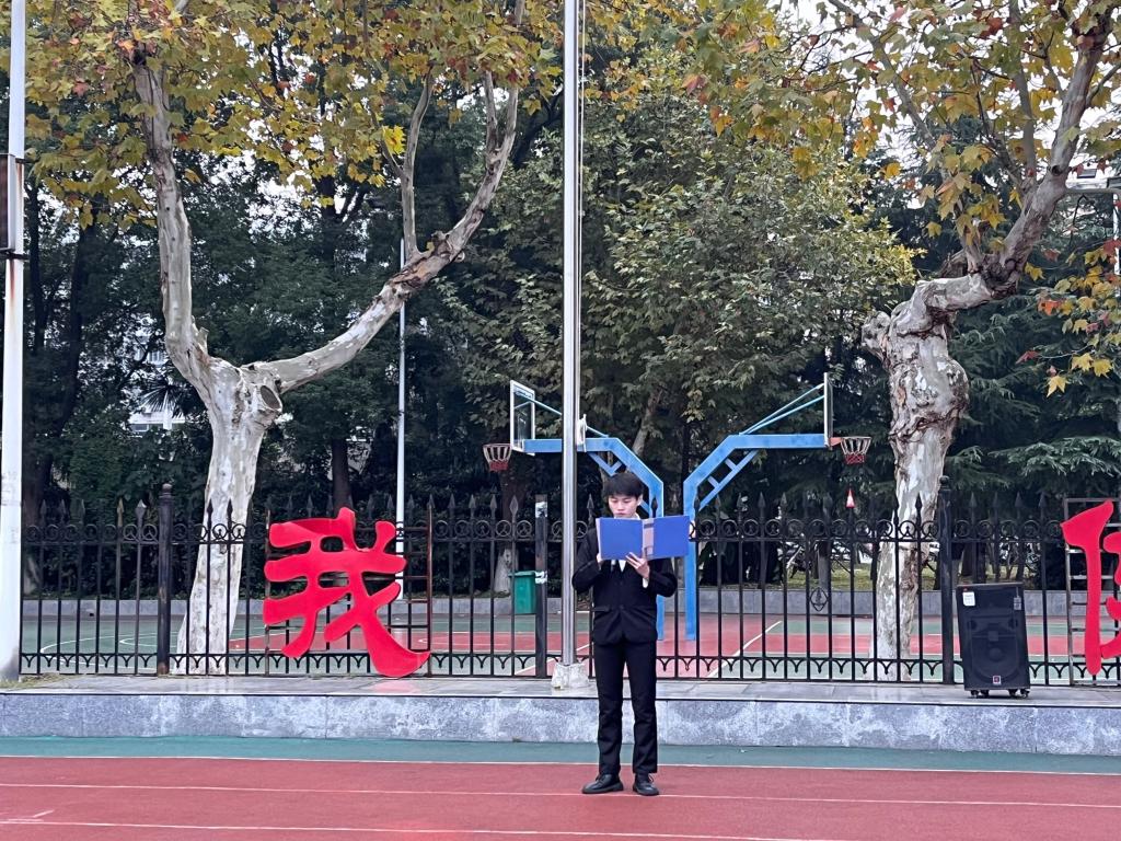 升完旗后,2022级学生代表司博进行国旗下演讲。司博同学以他自身经历为引,勉励同学们脚踏实地、敢于实践、勇于担当,争做青春最美追梦人。同时他祝愿所有同学都能在长大成就自我、找寻到属于自己的青春。司博同学慷慨激昂的陈词、饱含真情的语句深深激励了台下所有同学。