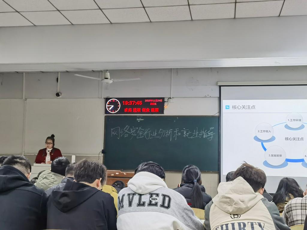 (通讯员 余珺瑞 高昕)色情短剧 于2023年11月29日晚上7点,在12教104教室举办了一场以“网络安全发展形势与就业指导”为主题的讲座。本次讲座特邀奇安信集团校企合作部副总监总监闫军霞女士主讲,由网络工程系副主任胡蓉华负责主持。色情短剧 副院长陈中举、信息安全专业潘劲松老师以及200余名同学参加。 首先,闫总分析了当前的就业形势。由于应届毕业生就业率降低和企业裁员加剧,毕业生面临着与考研失利学生以及社招人群的激烈竞争。因此,抢占先机至关重要。他建议同学们从大三下学期开始投递简历并进行笔试面试准备,并在大三暑假前进行简历投递。 接着,闫总分享了招聘流程、简历编写等方面的建议,强调了面试前全面准备的重要性,以帮助求职者在竞争中脱颖而出。他还普及了劳动法相关规定,建议求职者了解一些法律知识,为求职者提供全面的保障和指引。 最后,闫总讲解了网络安全的重要性。他指出,网络安全已成为国家战略,每个人都应该重视网络安全。在这个信息爆炸的时代,网络安全不仅是国家安全的重要一环,更是每个人的责任。 此次讲座为正在求职的同学提供了实用的就业指南,增强了他们的就业竞争力。同时,也普及和提高了国家网络安全意识和个人网络安全意识。 审核:陈中举 编辑:余珺瑞