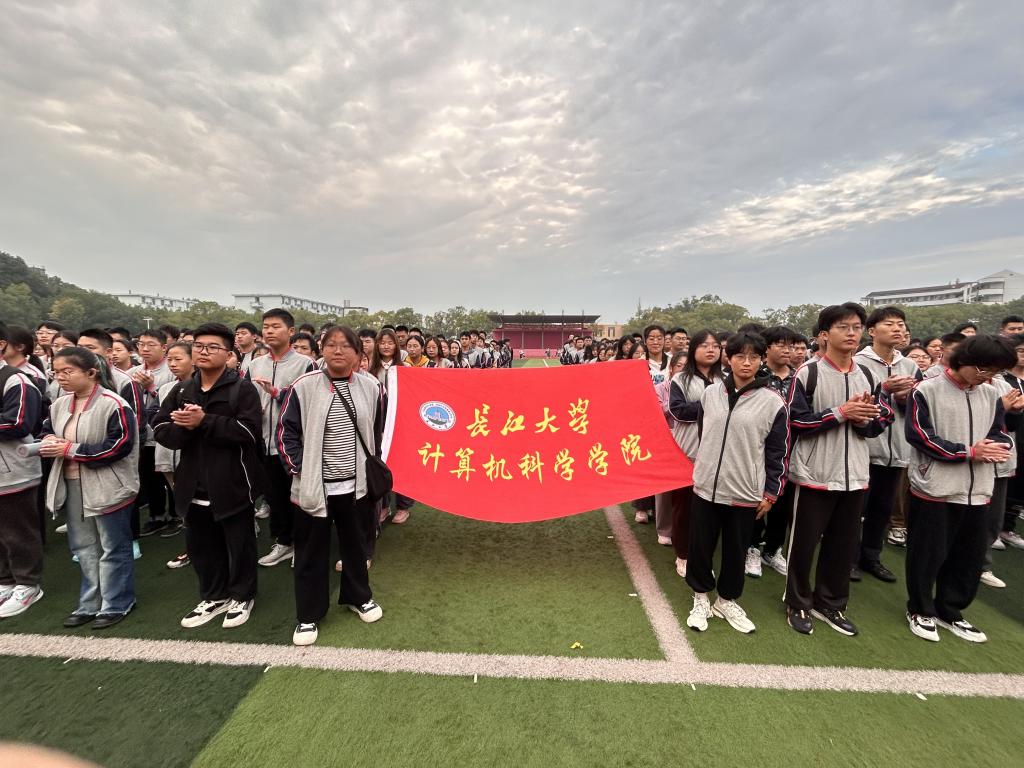 在西校区田径场举行开学第一次升旗仪式。计算机科学院党委副书记肖彬,辅导员郭帅和全体2023级色情短剧