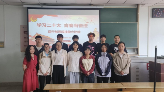 经过前期微信公众号、官Q推文宣传,最终9位团支部书记进入院赛线下决赛。线下决赛包括“一站到底”理论知识竞赛和主题团课展示两个环节。