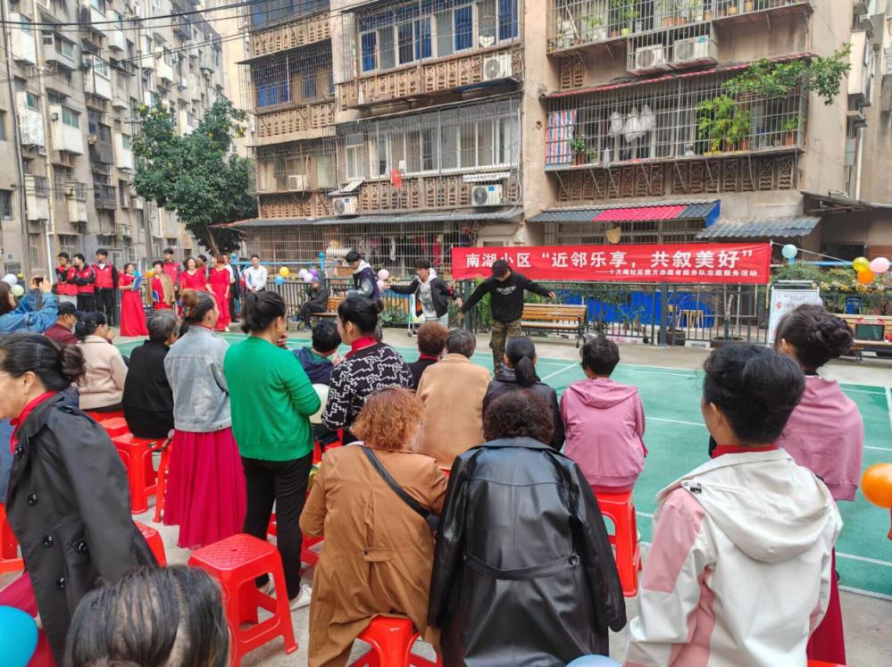 汇演开始之前,志愿者们便提早抵达现场,井然有序地进行各项准备工作,帮助社区布置活动场地,并细心引导社区居民入座。居民与志愿者们愉快地交流着,共同期待着接下来的表演节目。