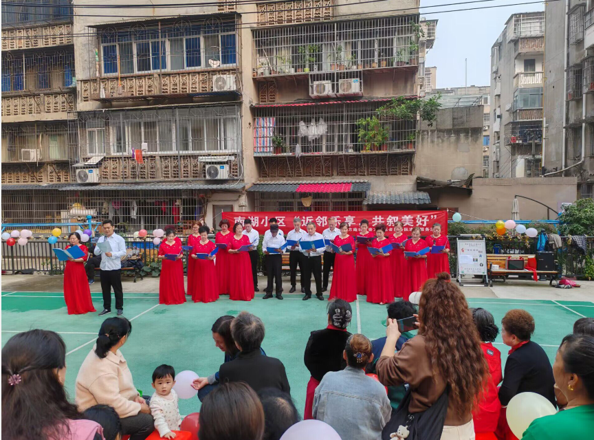 社区居民准备了丰富多彩的节目,有热烈奔放的开场腰鼓舞《闻鸡起舞》,声情并茂的诗朗诵《美好社区,我们的家园》,优美动人的红色舞蹈《绣红旗》等。台下观众纷纷拿起手机记录分享,掌声不断。