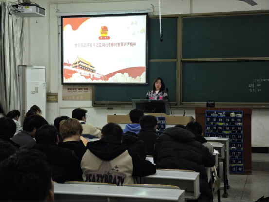 接着,李陈梦同学带领计科32404班通过观看视频等方式来学习习近平总书记给中国国际大学生创新大赛参赛学生代表的回信精神,并与同学们一同研读理解了习近平总书记在湖北考察时重要讲话精神。在学习习近平总书记的思想的基础上从中国国情出发,结合社会现象,国际局势让同学懂得了如何报效祖国。除此之外,她也帮助同学们了解习近平总书记关于促进高质量充分就业的重要讲话精神。同时,李陈梦同学积极响应学校号召带领同学们共同学习了《网络数据安全管理条例》,会议当天,充分调动了同学们积极性,呼吁大家注重网络安全,保护自己。