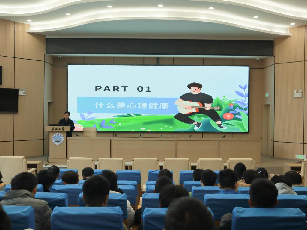 四级心理危机干预体系和学生心理健康教育中心,给同学们展示学生心理健康教育中心的实景,让同学们牢记24小时生命热线,了解心理中心的服务项目和咨询项目,并且要求参会学生干部会后及时传达此次培训会相关内容。