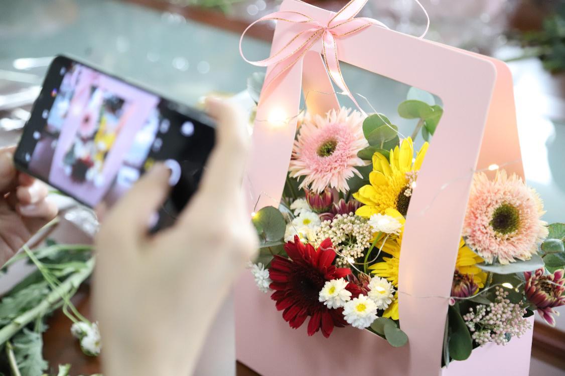 经过一个小时的教学,一支支简单、漂亮的鲜花错落有致地插在了花盒中,一束束独具匠心的花艺作品生机盎然、美丽摇曳,万紫千红中赏花色、嗅花香,大家更是笑靥如花,幸福如花。