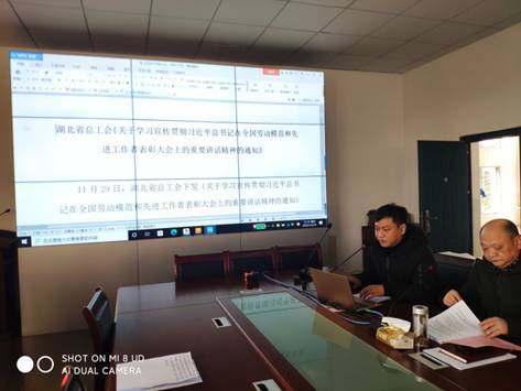随后,学院党委副书记兼工会主席颜学俊同志,带领大家学习了湖北省总工会下发的《关于学习宣传贯彻习近平总书记在全国劳动模范和先进工作者表彰大会上的重要讲话精神的通知》,和人民日报文章“切实实现好维护好发展好劳动者合法权益——论学习贯彻习近平总书记在全国劳动模范和先进工作者表彰大会上重要讲话”,并通报了12月23日学校学工会议主要内容及学院期末工作安排。