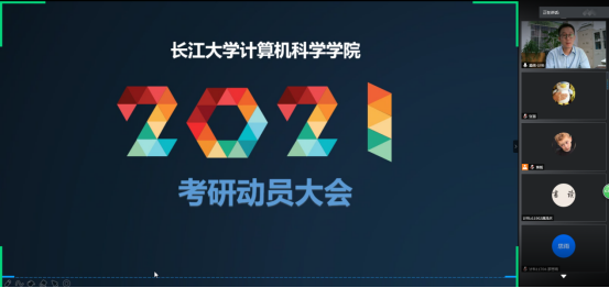 为了进一步提升2021届毕业生的考研热情,明确考研目标,掌握相关考研技巧,了解更多考研信息,2020年7月7日晚18:40,学院利用腾讯会议举行2021届毕业生考研动员大会,开展了线上考研经验交流。学院副院长詹炜、宋文广,党委副书记颜学俊,学工处蒋毅,辅导员苏玉容、张茜、余珺瑞,3名考上研究生的2020届毕业生以及全体2017级学生参加了此次会议。会议由党委副书记颜学俊主持。