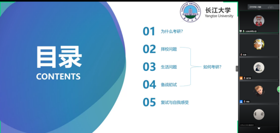 交流会中,三位学长学姐结合自己的切身经历,从考研必要性、评估自己的专业能力、结合自身实际选择学校、公共课和专业课如何复习备考、面试准备等方面给同学们讲述了宝贵经验。他们希望同学们在考研路上坚持不懈,克服浮躁,一“研”为定,不要因为一点点的挫折与困难就半途而废。通过学长学姐们的分享,总结他们的经验,唯有坚持,才能获得最后的胜利。