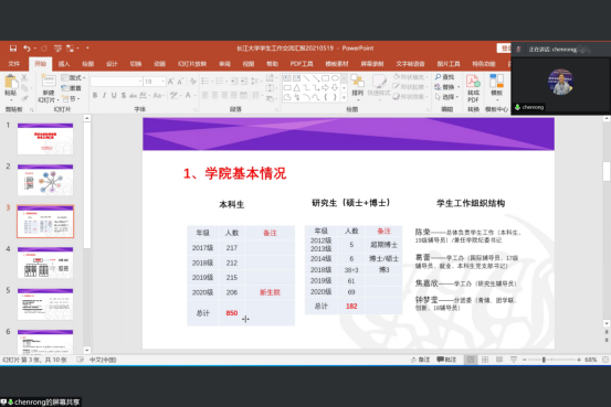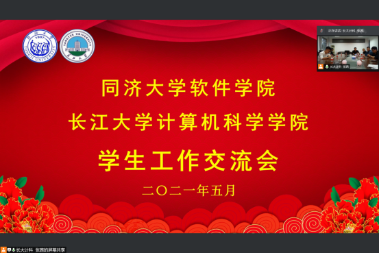 在腾讯会议上开展了学生工作交流。同济大学软件学院党委副书记陈荣、学工办主任万赟、分团委书记钟梦莹、研究生辅导员焦佳欣和色情短剧