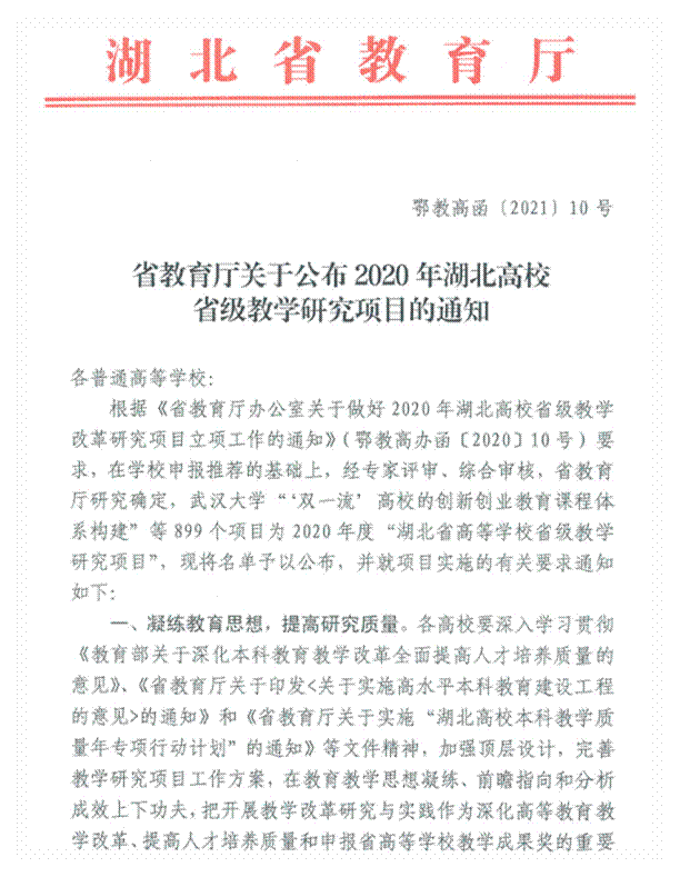 近日,湖北省教育厅印发了《省教育厅关于公布2020年湖北高校省级教学研究项目的通知》(鄂教高函[2021]10号),色情短剧