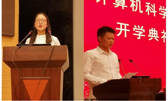 接着由老生代表卞珍怡及新生代表王鑫锐发言,他们结合自身经历给出建议:面对充满未知和挑战的大学生活,大家应该告别过去,脚踏实地走好每一步,并在接下来的四年学习生活中艰苦奋斗。