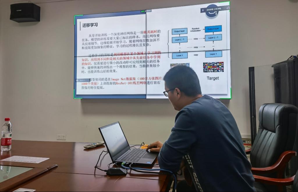 6位研究生依次登台汇报,分别围绕各自的研究方向,为同学们分享了井筒截面持率成像功能设计、基于迁移学习的岩性图像智能识别、基于GA-OC-SVM的油田离心泵注水站数据异常检测、离心泵故障诊断边界条件及模型研究、GoogLeNet论文精读、DQN中的高估问题研究等内容。讲坛成为知识共享与传播的重要方式,为全院研究生提供了一份丰富的知识盛宴,报告过程中不断有老师和学生与演讲人针对相关研究成果互动、探究。在每名研究生演讲完后,宋文广副院长从多角度对演讲人的汇报进行仔细点评,对其研究内容可能遇到的科研难点分享了自己的科研经验,通过点评有效促进了研究生的成长。
