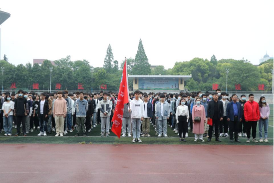 活动逐渐落下序幕,主持人张优激励大家以最饱满的心态去面对六月份的英语四六级考试,并带领全体同学宣誓,以端庄诚信的姿态迎接挑战。活动最后,由主持人张优宣布“千班唱红歌,万人健康跑”活动正式开始,在领跑人员的积极带领下,同学们围绕着操场开始跑步,本次活动正式拉下序幕。