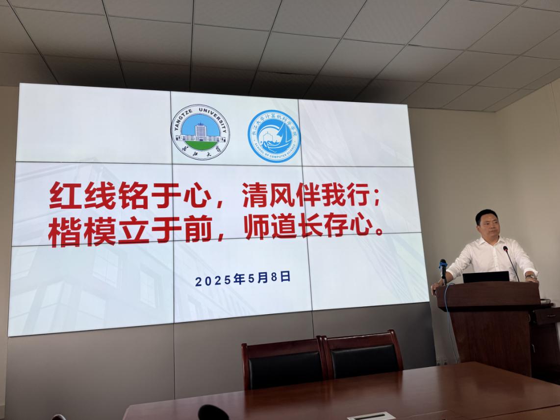 领导干部警示教育会议精神,并以《弘扬高尚师德,坚守教育使命》为题,开展师德师风主题教育。他详细解读了《关于做好2025年师德师风建设活动的通知》,对相关工作进行部署,强调师德师风建设的重要性。郑健书记带领教职工学习《新时代高校教师职业行为十项准则》,通过深入剖析学术不端、疏于职责、师生关系失范、酒驾醉驾等四类典型师德失范典型案例,警示大家坚守师德底线,牢记教育使命,务必做到“红线铭于心,清风伴我行;楷模立于前,师道长存心”,时刻牢记作为一名高校教师的责任与使命。