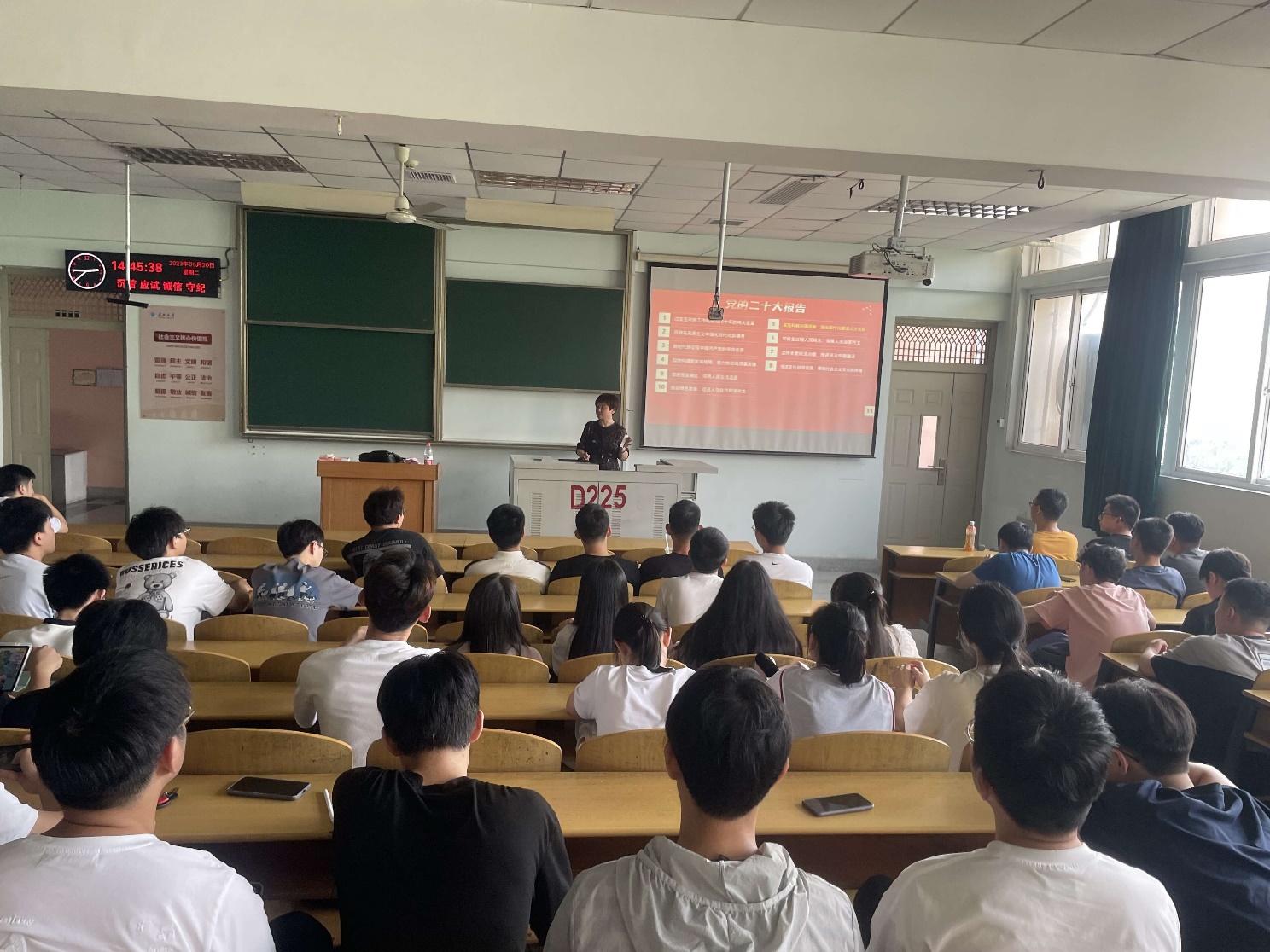 院长崔艳荣以《从ChatGPT人工智能看科技创新》为题作形势与政策报告,学院全体一年级研究生参会。