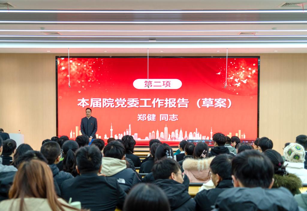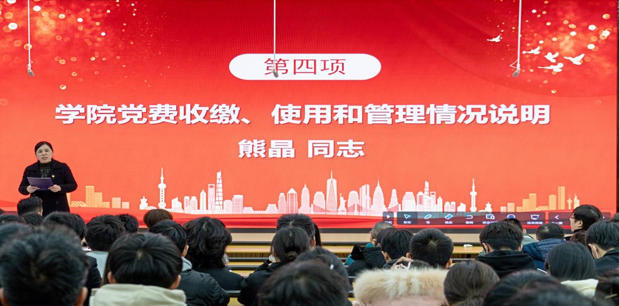 使命、远景和各项中心工作,团结广大党员和师生员工,在思想政治教育、组织建设、党风廉政建设、意识形态工作、统战工作、群团工作和学院发展等方面都取得了可喜成绩,同时报告也分析了学院党委工作面临的形势与挑战,明确了学院未来发展的重点工作和目标任务。全体党员听取并审议了院党委的工作报告(草案)、学院党费收缴、管理和使用情况报告。