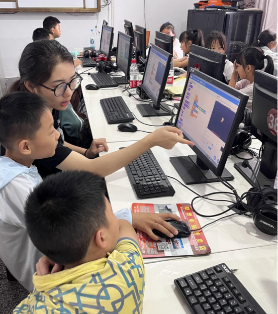如何高效地开展教学?这是摆在支教队员面前的首要问题。根据实际校情和学情,支教队员到达当晚就迅速组织了一场集体备课,开启头脑风暴。“我认为可以从简单的游戏制作着手……”“我们可以组织一次摸底测试,了解学生的实际水平。”很快,支教队员就制定出教学计划,基于学生的实际水平,将编程夏令营分为基础班和进阶班两个班级分开授课。基础班教学主要是针对零基础学生,从最基础的电脑硬件使用和程序介绍开始,而进阶班则教学生进行更为复杂的编程项目操作。至此,每晚的集体备课成为了常态,讨论、反思、总结、提高,支教队不断摸索创新授课方式。