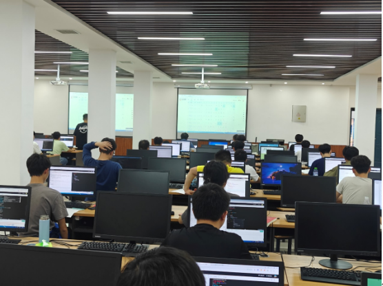 比赛现场竞争激烈,每位选手竞相展示着自己的实力和智慧。当选手完成每道题的解答,赛事志愿者会将代表“成功”的红色贴纸置于桌前,贴纸与选手们专注的面孔交相辉映,为比赛现场增添了不少趣味性。此次竞赛不光涌现了高年级的编程高手,一年级新生也当仁不让,凭借扎实的编程基础、敏捷的思维和极具想象力的算法设计,在比赛中斩获奖项。在长达4个小时的比赛时间里,他们挥洒着汗水,用不屈的意志展现了新时代大学生的风貌。
