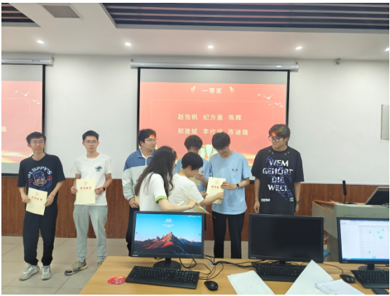 院长崔艳荣为获奖学生颁发证书。据悉,中国大学生程序设计竞赛是由中国大学生程序设计竞赛组委会组织举办的年度性赛事,自从2015年首届CCPC竞赛以来,赛事规模发展迅猛,竞赛影响力持续提升,已经成为中国水平最高、规模最大的计算机学科竞赛,为我国IT业的发展培养和选拔了大批人才。